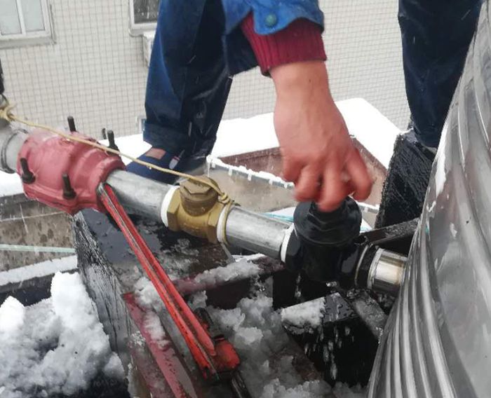 頂風冒雪爬水箱手凍得通紅