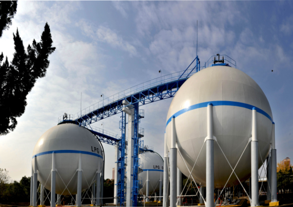 本次罐體全面檢驗(yàn)相比以往呈現(xiàn)新的亮點(diǎn),罐體表面防腐保護(hù)漆嚴(yán)格按國(guó)家標(biāo)準(zhǔn)認(rèn)真調(diào)色,對(duì)罐區(qū)鋼結(jié)構(gòu)盤梯和平臺(tái)進(jìn)行全面除銹和噴涂防銹底漆、藍(lán)色面漆,并新噴印LPG標(biāo)識(shí)及球罐中部的環(huán)形藍(lán)色帶,換妝后的三座1000立方米球罐在陽(yáng)光下熠熠生輝。