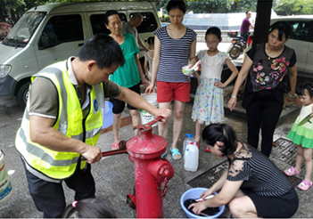 供水職工義務(wù)救援 烈日下為南湖居民供水