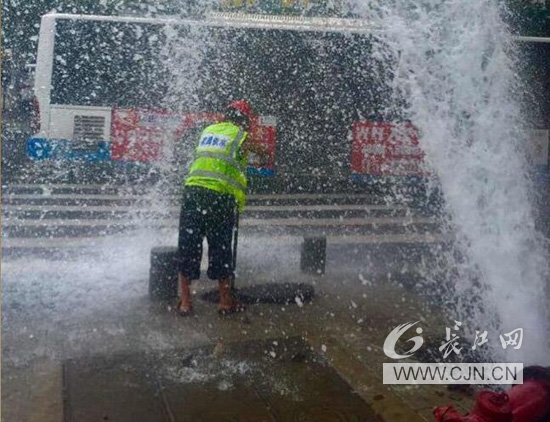 10多分鐘的緊急關(guān)閘,徐金奎全身透濕,衣服扭緊在身上,眼鏡被強(qiáng)力水柱沖至馬路中央遭車輛碾碎。視線模糊中,他顧不得透濕,繼續(xù)與搶修人員抓緊搶修,直至完成任務(wù)……