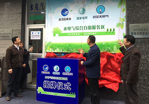 武漢市水、電、氣三家公共服務(wù)企業(yè)首次實現(xiàn)營業(yè)廳資源共享,開辟了“水電氣綜合自助服務(wù)區(qū)”,方便市民“一站式”辦理水電氣繳費、圈存、查詢等業(yè)務(wù)。3月24日上午9點半,水電氣聯(lián)合召開發(fā)布會,三家企業(yè)領(lǐng)導(dǎo)共同揭牌。