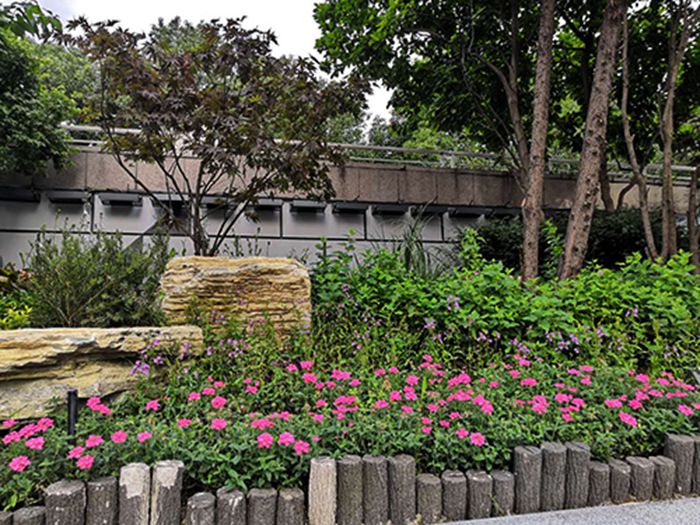 在永清門(mén)閘口處,植物特色為“竹隱青松”,以竹子、羅漢松等常綠木本多年生植物為主,營(yíng)造出綠意盎然的蔥戎景象,整體呼應(yīng)“永青”二字。