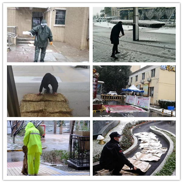 為保障小區(qū)居民生活秩序正常和防疫工作人員平安出行,所屬6個物業(yè)公司迅速行動,服務全市43個小區(qū)、辦公樓等物業(yè)項目400余萬方,組織200余名應急隊員,做好雪前鋪草墊防滑,雪后撒融雪劑除雪等工作。